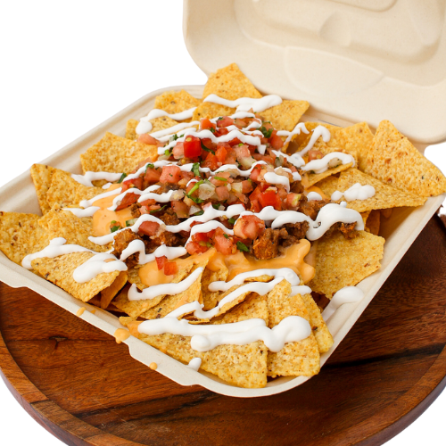 Organic chips loaded with local taro & seasoned beef, topped with creamy cheese, sour cream, and fresh pico de gallo.