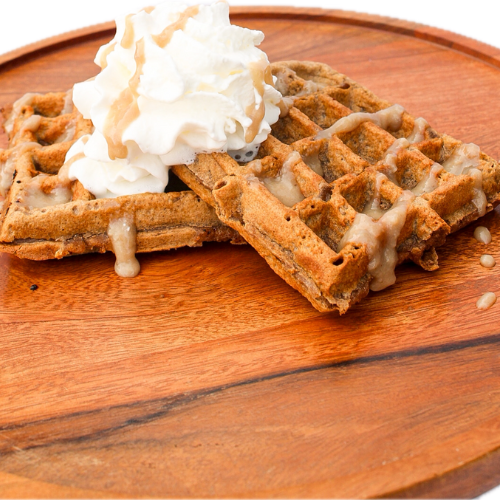 Our one-of-a-kind waffles are made with 100% of our locally produced flour mix—cassava, breadfruit, taro, and green banana.
